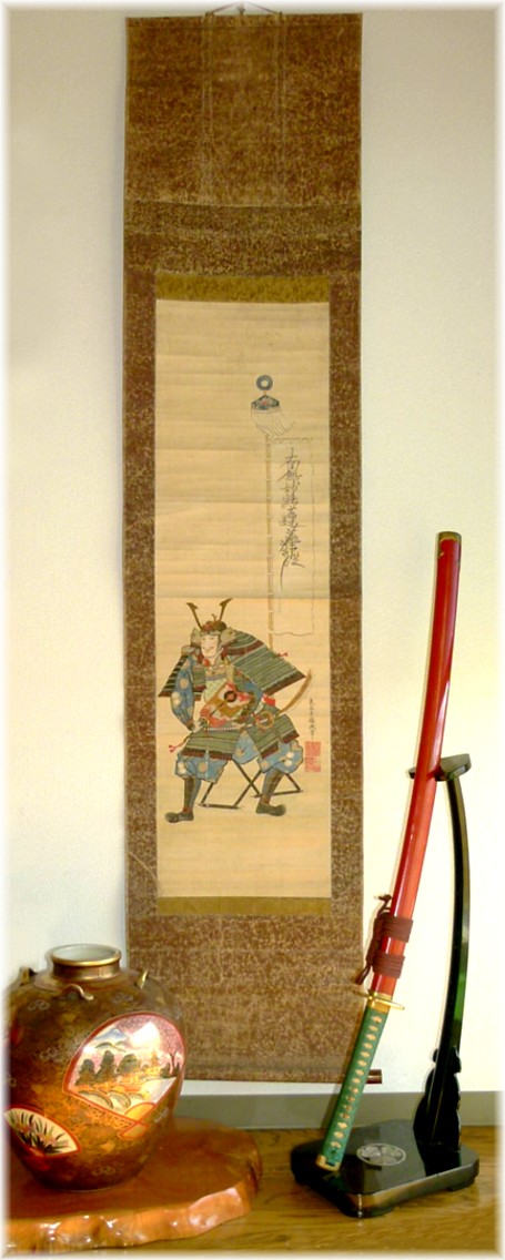 В руке сёгун держит большой сигнальный веер - гунпай.