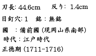 - Длина клинка (Hacho): 44,6 см (1.47 Shaku),