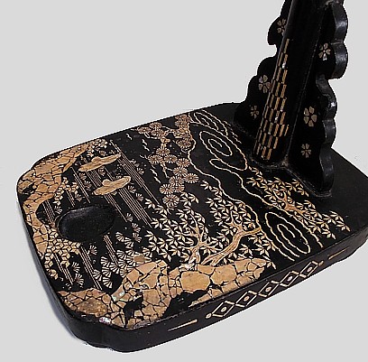Антикварная японская подставка для самурайского меча с инкрустацией