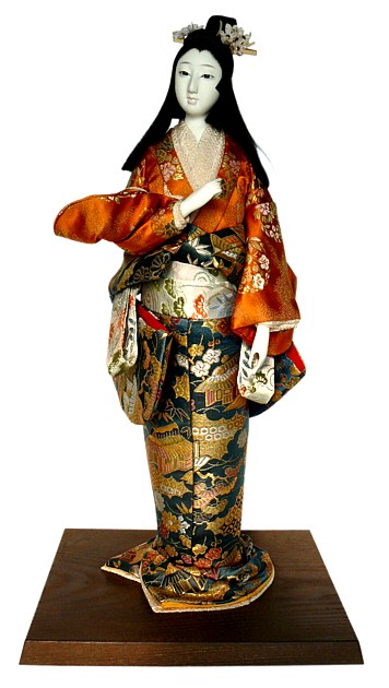 молодую девушку, причесанную в стиле Киото и одетую в дорогое