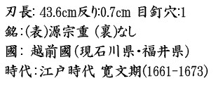- Длина клинка (Hacho): 43,6 см (1.44 Shaku)